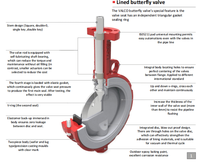 يتم إحكام غلق صمام الفراشة VALCO على عمود ساق الصمام.